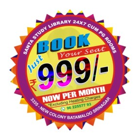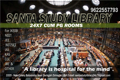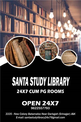 Welcome To Santa Study Library 24x7 Cum PG Rooms at 3335 New Colony, Batamaloo - Srinagar # 9622557793